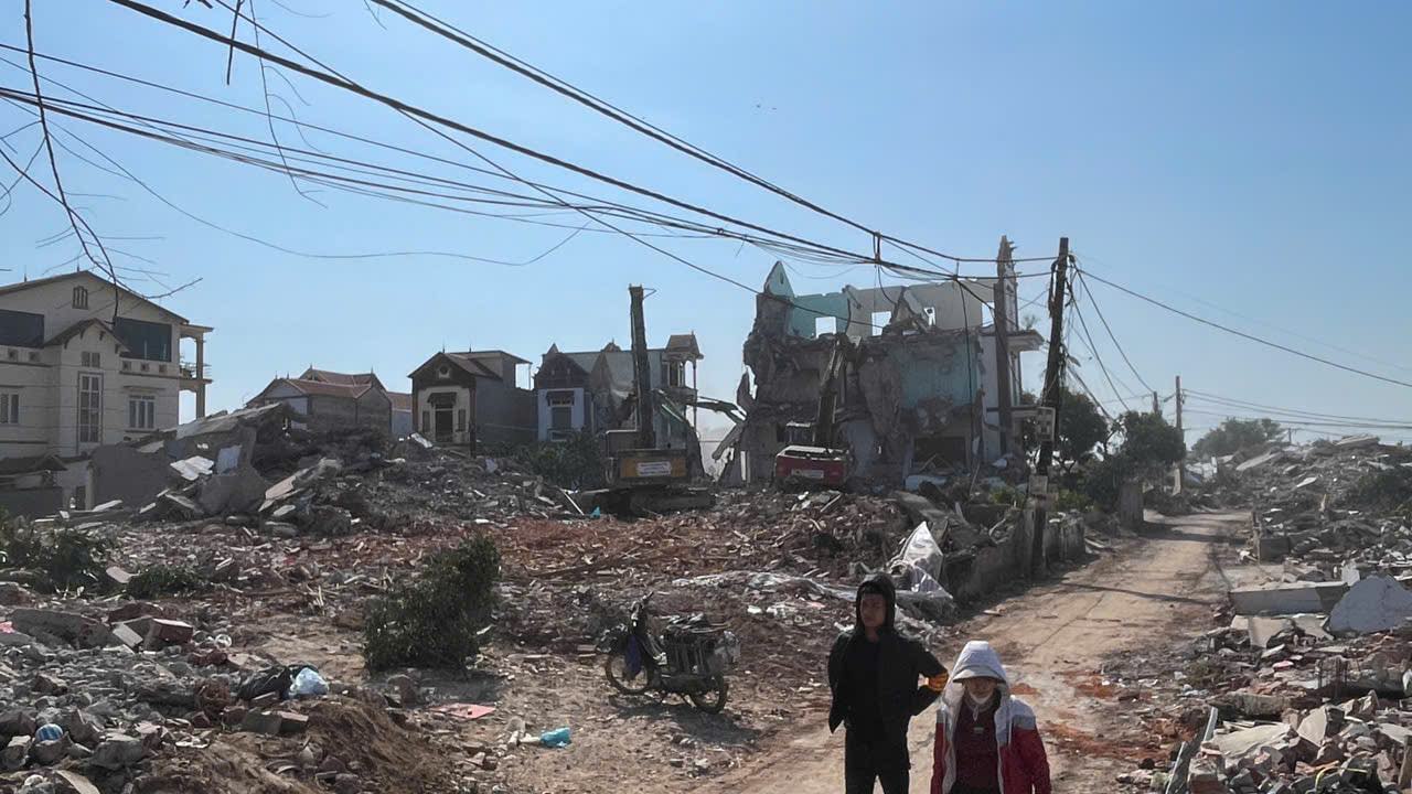 Những ngôi nhà nằm trong chỉ giới tuyến đường Vành đai 4 đã được lực lượng chức năng xã Mê Linh tháo dỡ. Ảnh: Hoàng Sơn
