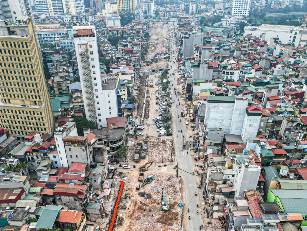 Ông Nguyễn Tấn Nam An - Trưởng phòng Quản lý thực hiện dự án 1, Ban Quản lý dự án đầu tư xây dựng công trình dân dụng Hà Nội - cho hay, sau khi được bàn giao toàn bộ mặt bằng sạch, chủ đầu tư đã chỉ đạo các nhà thầu đồng loạt triển khai di chuyển hạ tầng ngầm nổi; di dời, chặt hạ cây xanh; thi công hạng mục đường, xây dựng cầu vượt trực thông trên tuyến, phấn đấu hoàn thành dự án trong năm 2026 theo chỉ đạo của UBND TP Hà Nội.