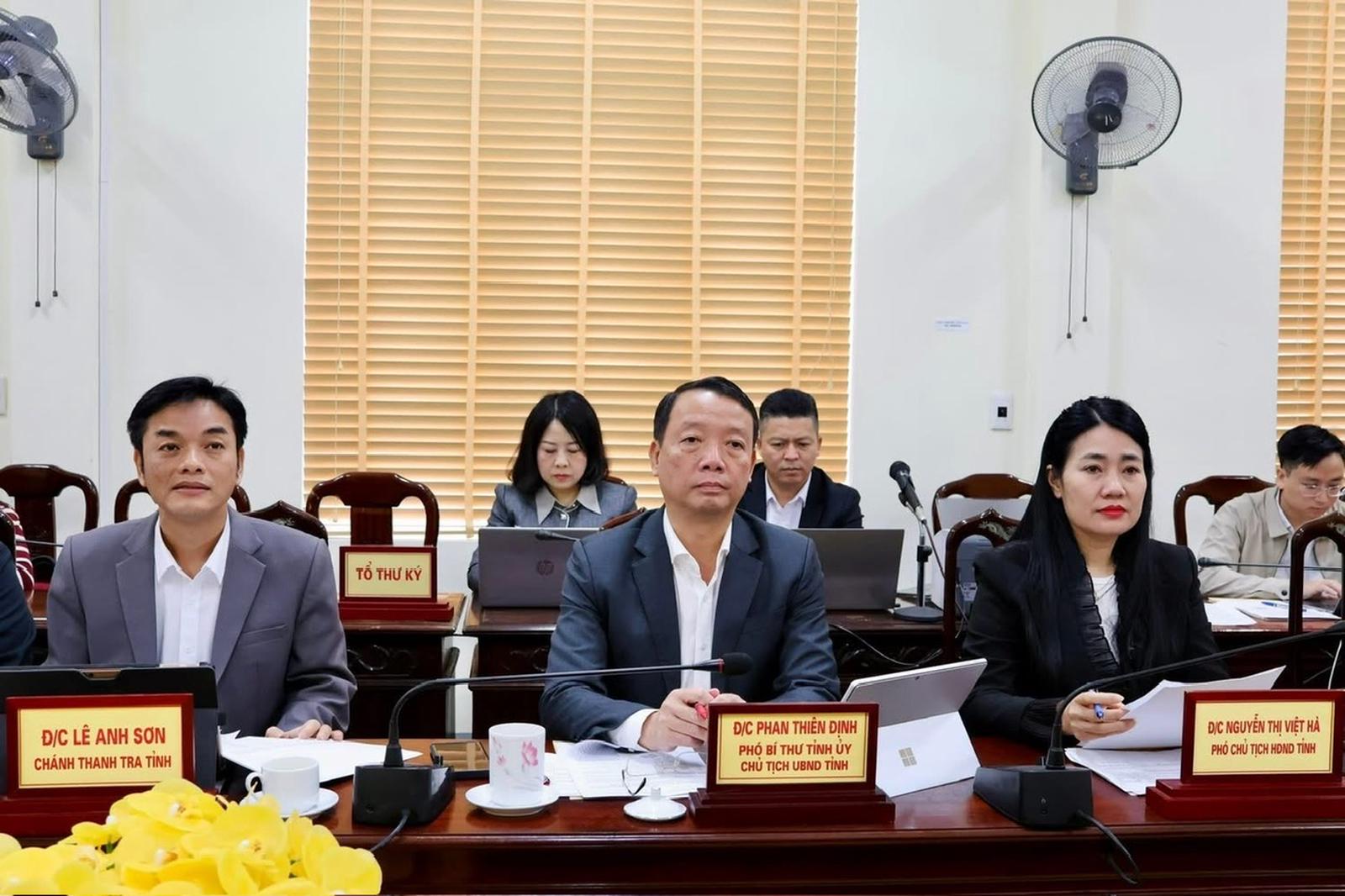 Chủ tịch UBND tỉnh Hà Tĩnh Phan Thiên Định (giữa) tại phiên tiếp. Ảnh: BBT