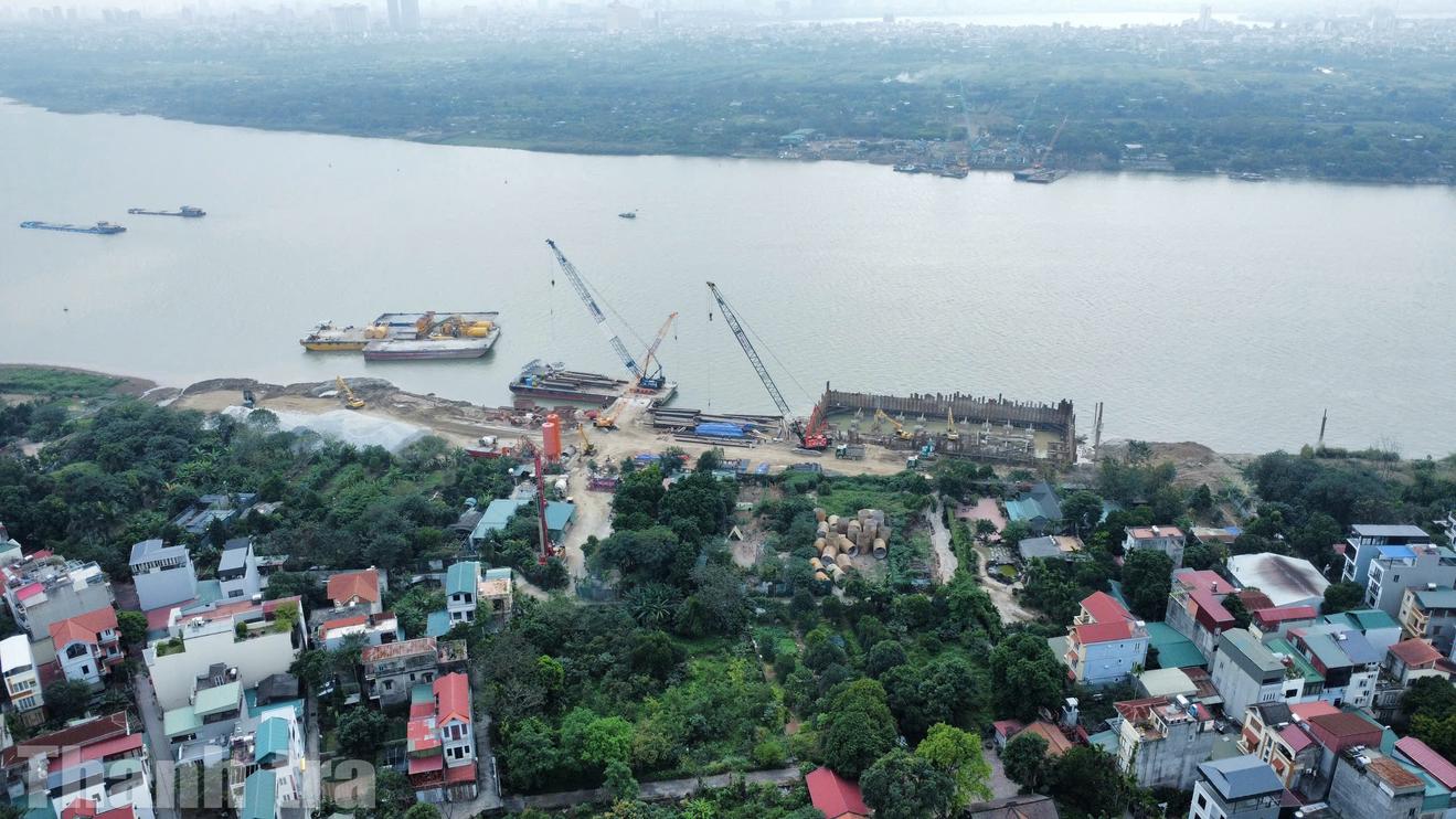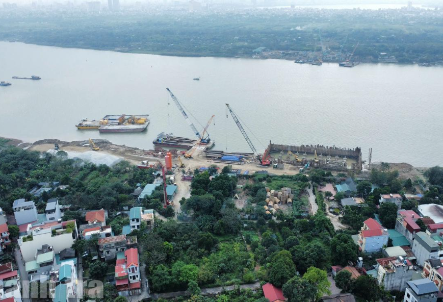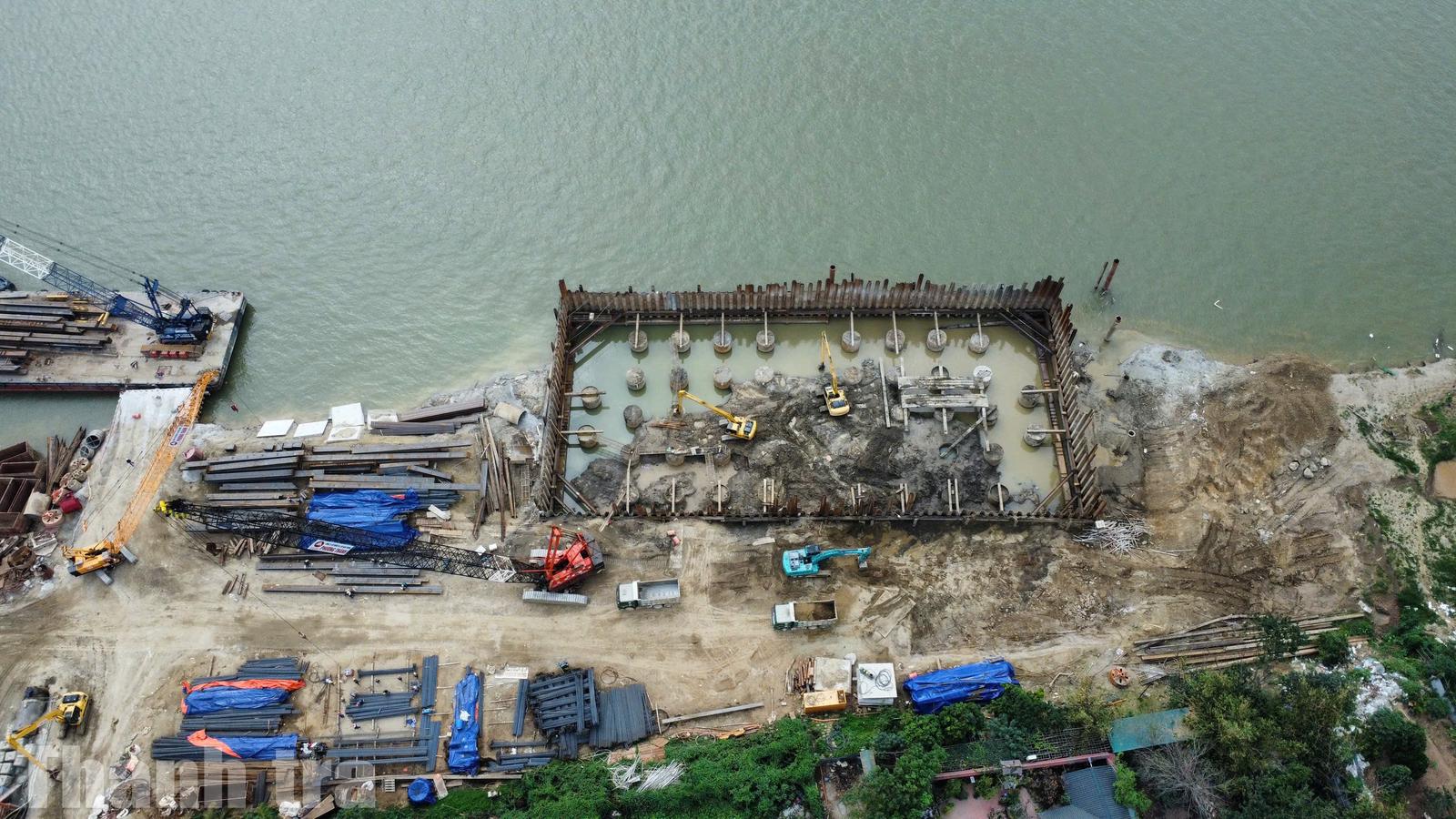 Cầu Tứ Liên được khởi công vào ngày 19/5/2025, sau khoảng 8 tháng thi công, dự án đã bắt đầu lộ diện những hạng mục đầu tiên trên công trình. Ảnh: Quang Việt