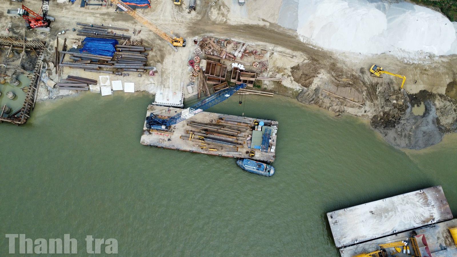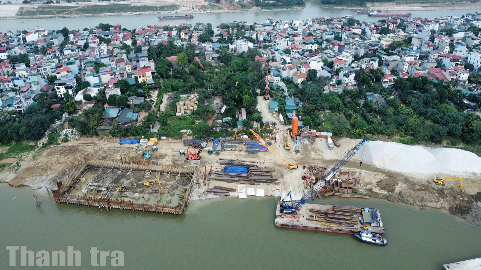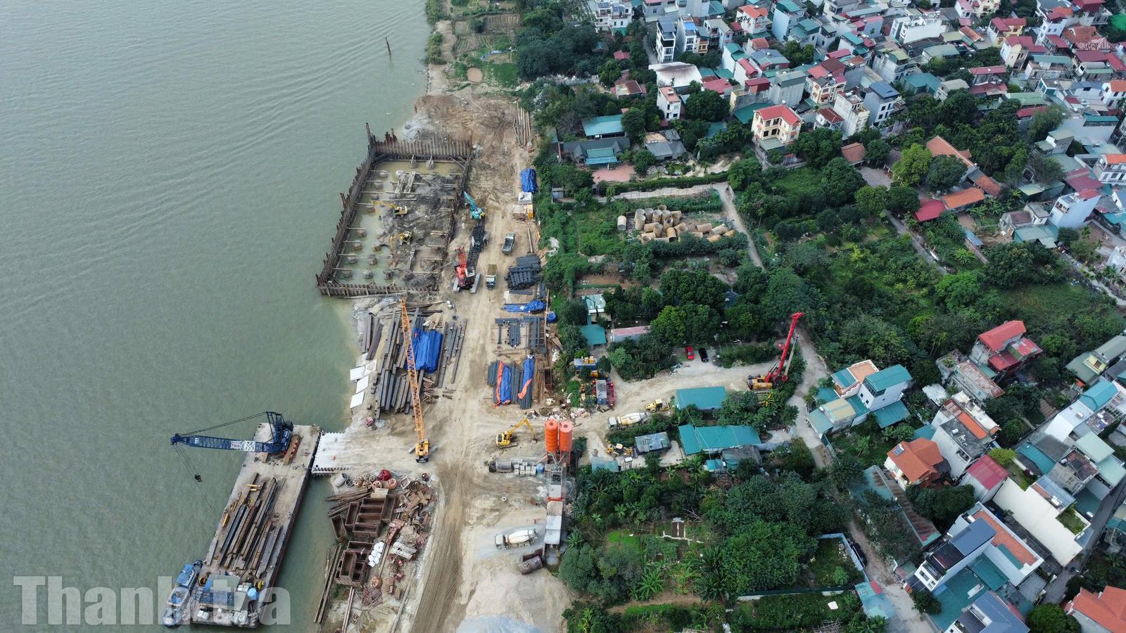 Cầu Tứ Liên được khởi công vào ngày 19/5/2025, sau khoảng 8 tháng thi công, dự án đã bắt đầu lộ diện những hạng mục đầu tiên trên công trình. Ảnh: Quang Việt