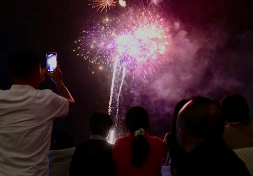 Lúc 20h10, màn pháo hoa tầm cao đầu tiên được tổ chức tại khu Vinpearl Harbour. Khu vực này mở cửa miễn phí để người dân và du khách vào tham quan, thưởng lãm.
