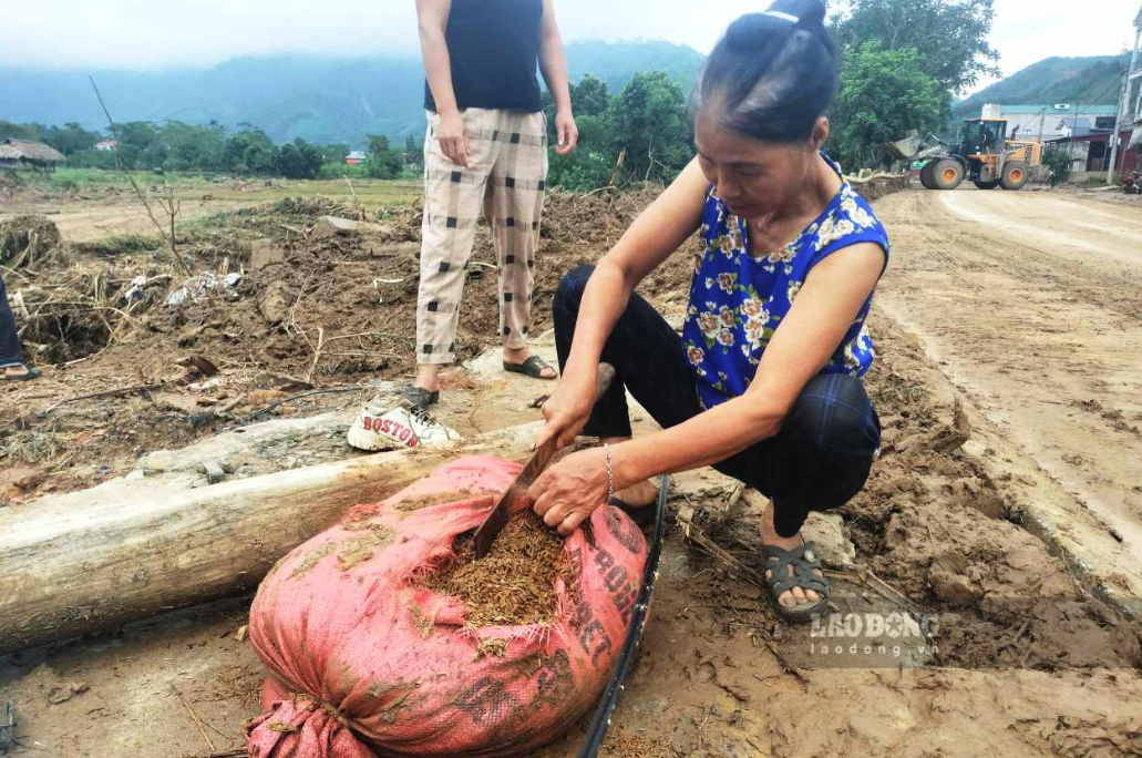 Hiện nhiều hộ dân "trắng tay" do ruộng vườn bị vùi lấp, lúa gạo trong nhà không còn, nguồn sinh kế của bà con như trâu, bò, lợn, vịt, gà cũng cuốn theo dòng nước.