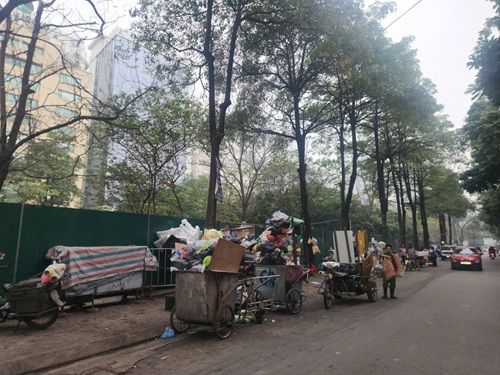 Hà Nội - Nhiều điểm tập kết xe rác chiếm lòng đường, ô nhiễm môi trường, khiến người dân bức xúc.
