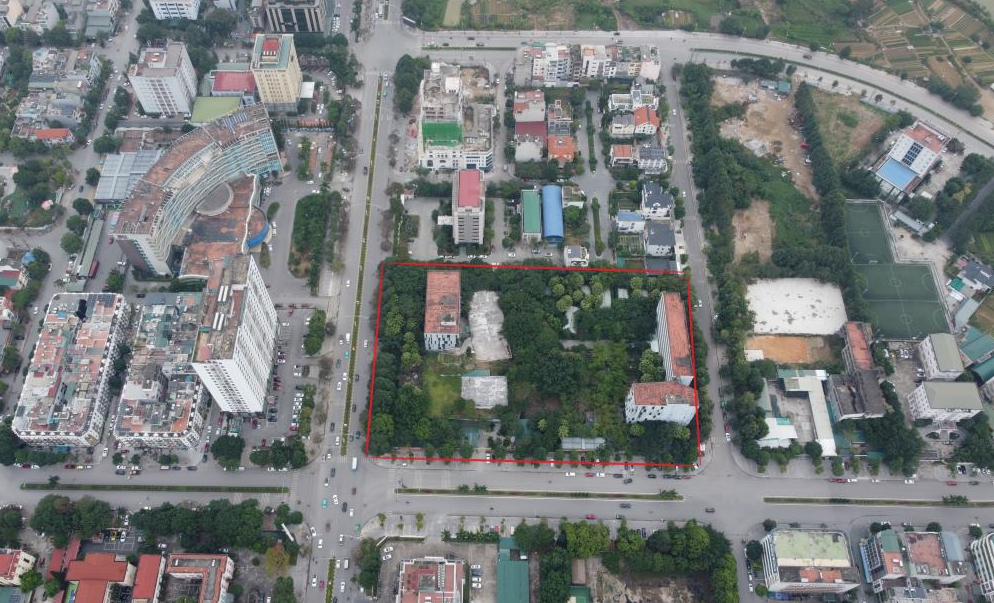 Khu dự án Trường Tiểu học và THCS Thanh Hoa (dấu khoanh đỏ) nhìn từ trên cao. Ảnh: Quách Du