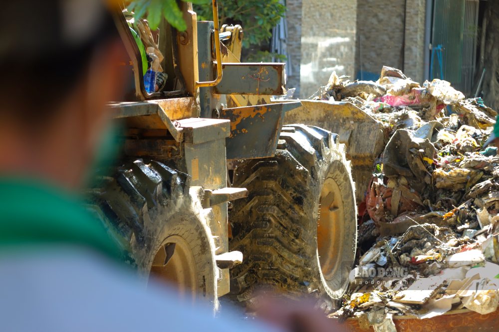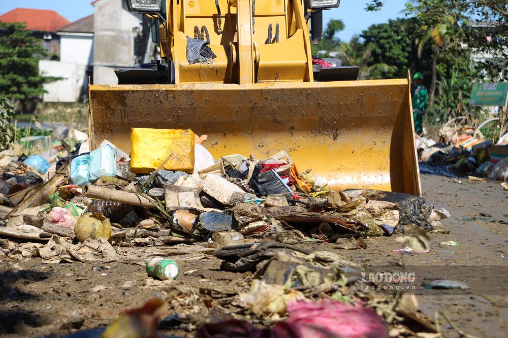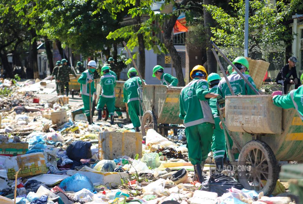 HUẾ - Lực lượng vũ trang phối hợp cùng các công nhân môi trường dọn dẹp số rác thải khổng lồ còn tồn đọng sau lũ.