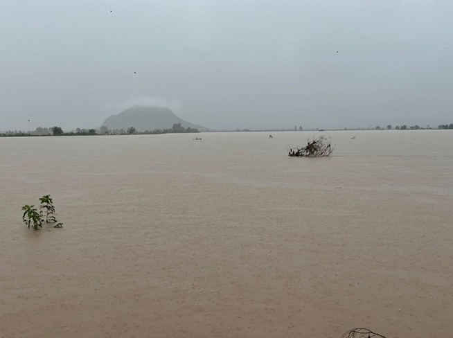 Nước lũ sông Ba dâng ngập mênh mông ở nhiều xã vùng hạ du, ven sông. Ảnh: Thanh Tuấn