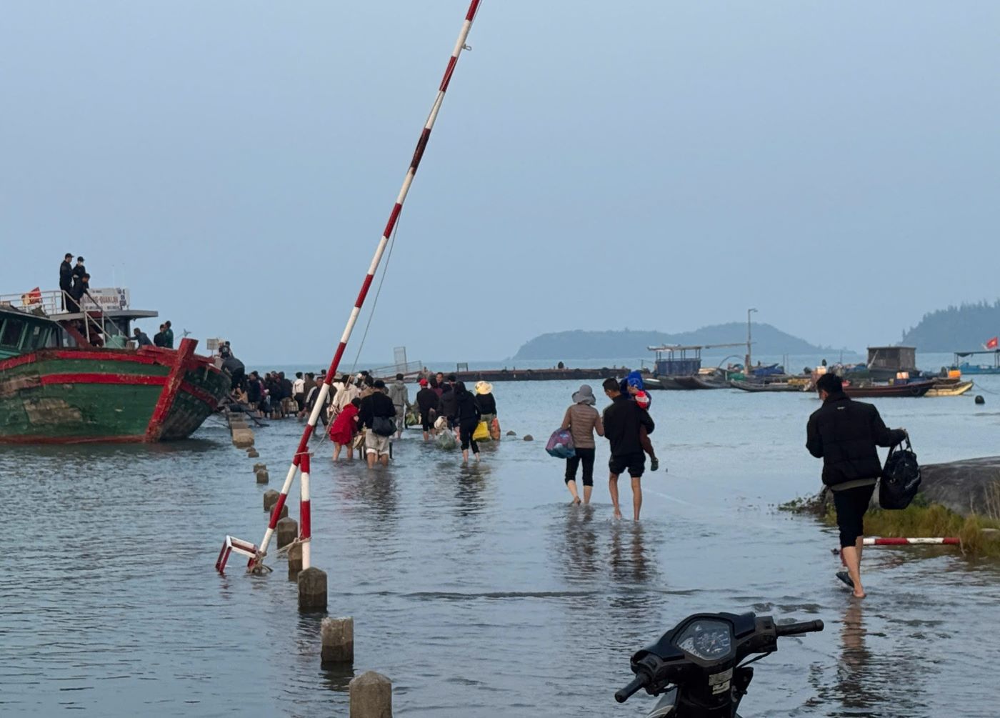Triều cường dâng cao khiến cầu cảng đảo Quan Lạn, Đặc khu Vân Đồn ngập nước. Ảnh: Nguyễn Hùng