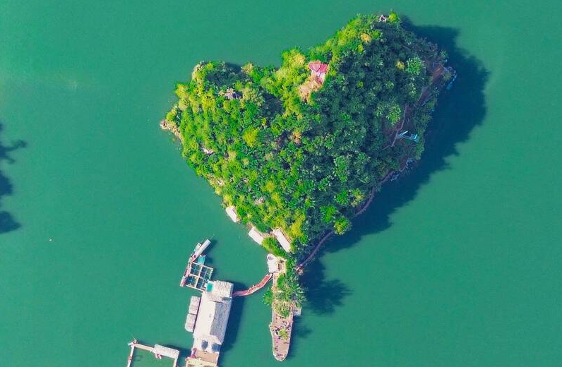 Khu vực Đảo trái tim, Vịnh Uy Phong, xã Quỳnh Nhai có màu nước xanh ngọc bích. Ảnh: Nhật Minh