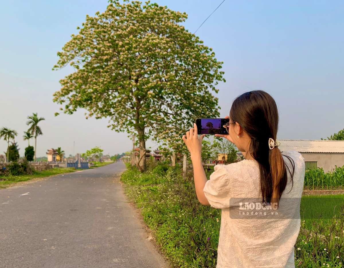 Nhiều bạn trẻ và du khách đã tìm đến, thích thú ghi lại những khoảnh khắc tuyệt đẹp bên tán hoa bún độc đáo này.