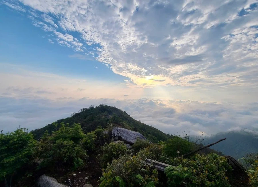 Ánh nắng Mặt trời len lỏi qua những kẽ lá, chiếu xuống thảm thực vật xanh mướt. Khi tới đỉnh Tả Liên Sơn, cảm xúc của tôi như ngưng đọng trước biển mây trắng xóa, xếp chồng lên nhau từng lớp, mềm mại như kẹo bông gòn. Đứng từ trên đỉnh, chúng tôi lặng người ngắm nhìn cả thành phố Lai Châu khuất mờ sau làn mây”, chị Thư hồi tưởng lại.