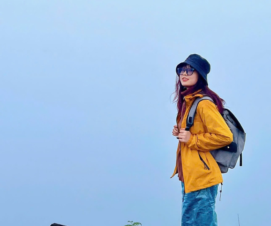 Chị Lê Hoàng Yến trong chuyến trekking tại Lảo Thẩn. Ảnh: NVCC.