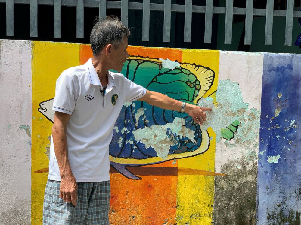 Chỉ sau vài năm, tranh tường đã xuống cấp. “Tường nhà tôi cũng được vẽ bức tranh hình con cá, ban đầu nó rất đẹp nhưng giờ sơn đã tróc hết, mất luôn phần đuôi con cá. Nơi đây gần các địa điểm du lịch và có đông du khách ghé đến, đặc biệt là mỗi dịp cuối tuần.