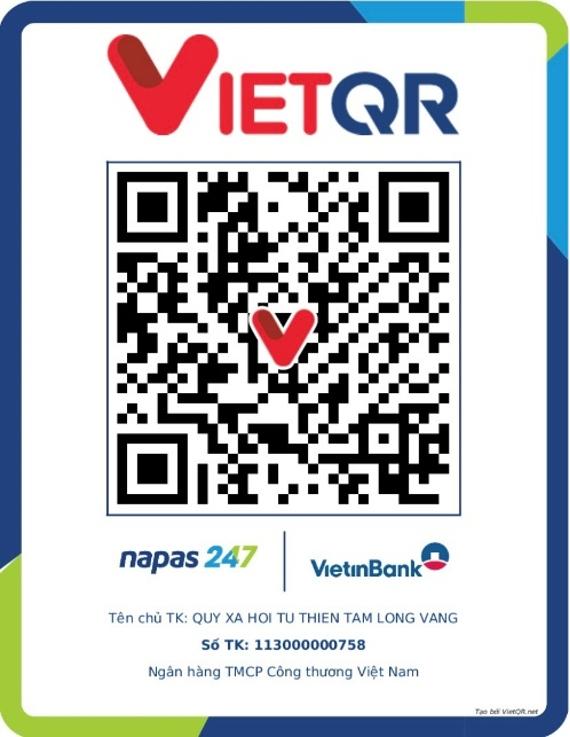Mọi sự giúp đỡ xin gửi về: Quỹ XHTT Tấm lòng Vàng, số 51 Hàng Bồ, Hoàn Kiếm, Hà Nội. Điện thoại: 024.39232756. Số tài khoản (STK): 113000000758 tại Vietinbank Chi nhánh Hoàn Kiếm, Hà Nội. STK: 0021000303088 - tại Vietcombank - Chi nhánh Hà Nội, STK: 12410001122556 - tại BIDV - Chi nhánh Hoàn Kiếm. Hoặc quét mã QR, vui lòng ghi rõ nội dung chuyển khoản: