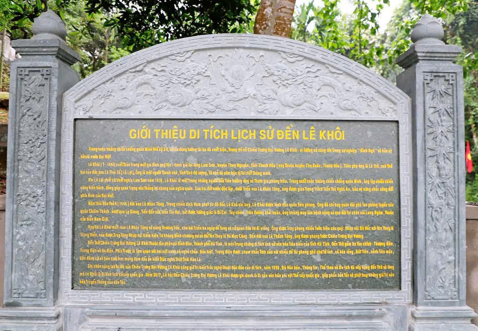 Bia giới thiệu tại đền Chiêu. Ảnh: HT