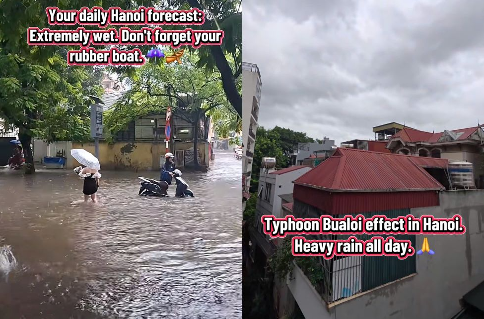 Phil và Harriet sốc khi nhìn thấy những con phố ở Hà Nội ngập trong biển nước do tàn dư bão Bualoi. Ảnh do nhân vật cung cấp