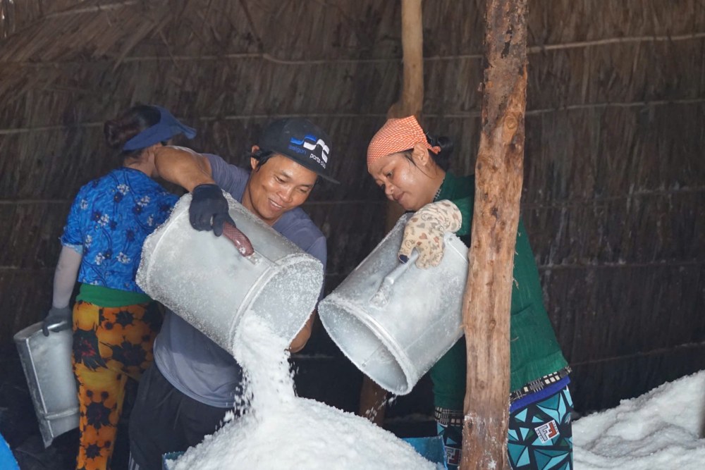 Chị Ngọc Sương, một diêm dân tiên phong làm du lịch, chia sẻ trong lúc hướng dẫn khách trải nghiệm trên ruộng muối: "Thay vì chỉ đứng nhìn, khách được trực tiếp cào muối, gánh muối, nếm thử vị mặn chát của biển. Từ một diêm dân, giờ tôi có thêm nghề hướng dẫn viên. Cuộc sống nhờ đó mà vui tươi, nhộn nhịp hơn hẳn, thu nhập cũng cải thiện đáng kể".