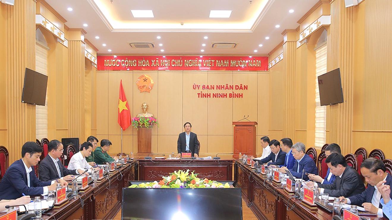 Ông Phạm Quang Ngọc, Chủ tịch UBND tỉnh Ninh Bình chủ trị hội nghị. Ảnh: BNB
