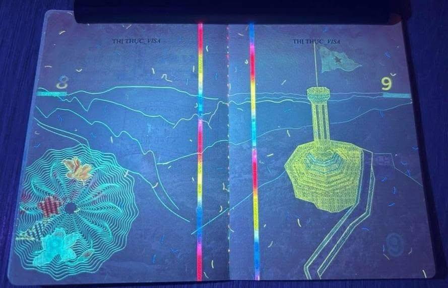 Hộ chiếu Việt Nam in chìm nhiều hình ảnh về các địa danh nổi tiếng chỉ có thể nhìn thấy khi soi đèn UV.