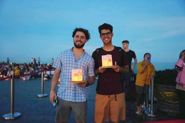 Du khách nước ngoài tham gia nghi thức dâng đăng trên núi Bà Đen