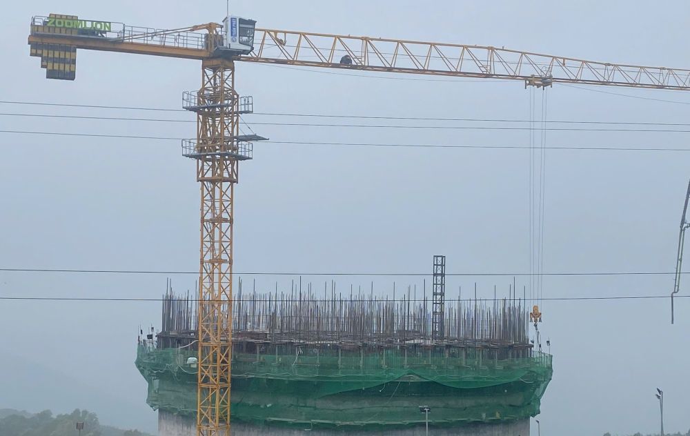 Khối đế có chiều cao hàng chục mét, sau khi hoàn thiện sẽ là nơi đặt tượng Phật cao nhất thế giới. Ảnh: Quách Du