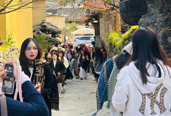 Cuối tuần, khách đứng xếp hàng để chụp ảnh với cây hồng chín, đoạn đường trước homestay thường xuyên rơi vào tình trạng ùn tắc vào những khung giờ cao điểm. Nhiều người còn đùa rằng đây là cây hồng “khổ nhất thế giới”.