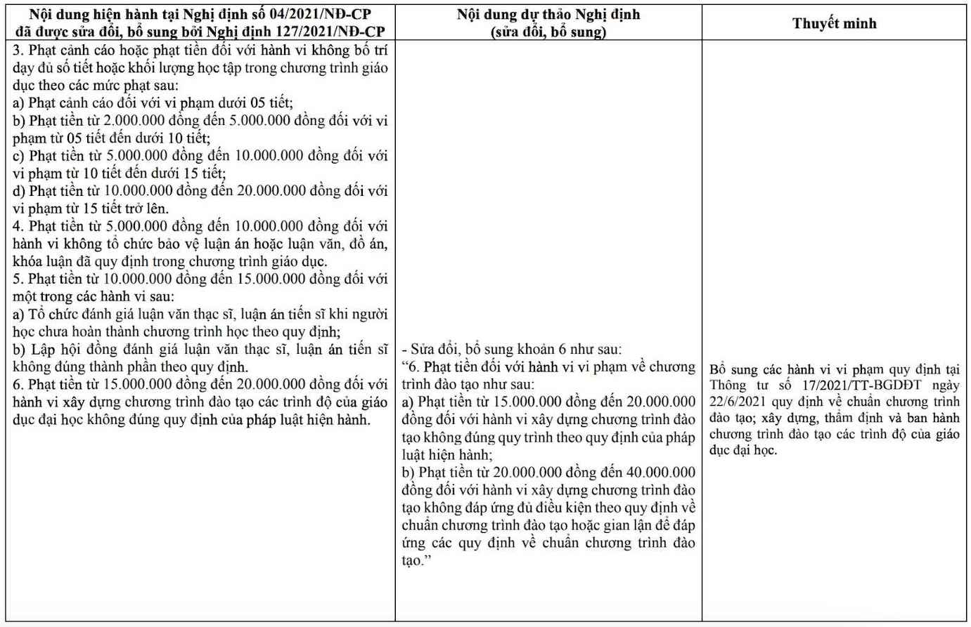 “6. Phạt tiền đối với hành vi vi phạm về chương trình đào tạo như sau: