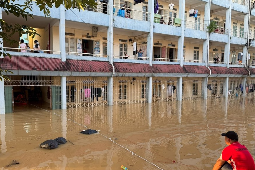 Theo phản ánh, nhiều phòng ký túc xá bị ngập sâu, mất điện và không thể liên lạc ra ngoài.