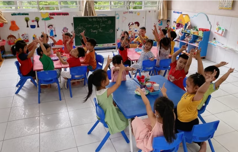 Trẻ tại Trường Mầm non Mặt Trời Nhỏ (phường Tân Tạo, TPHCM). Ảnh: INT