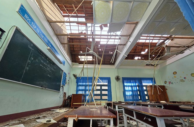 Gia Lai - Bão số 13 đã tàn phá cơ sở hạ tầng, thiết bị dạy học tại hàng trăm ngôi trường, gây ra thiệt hại hơn 140 tỉ đồng.