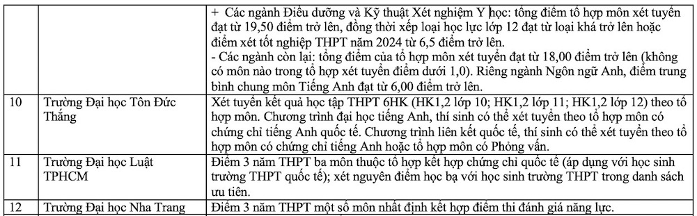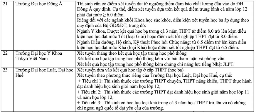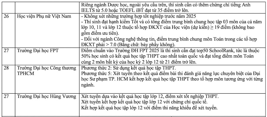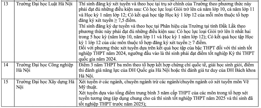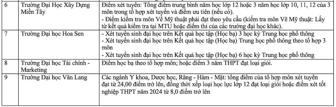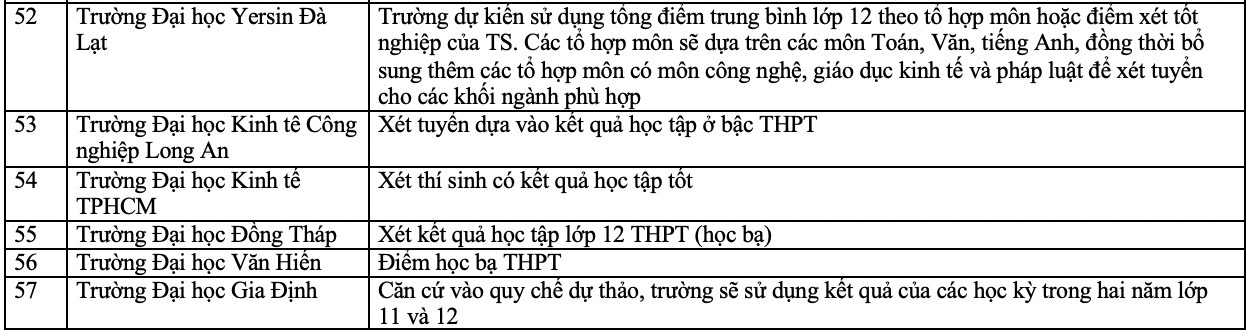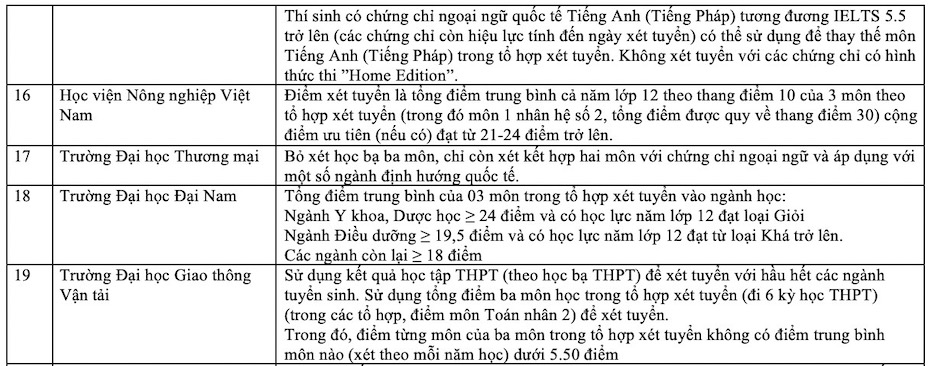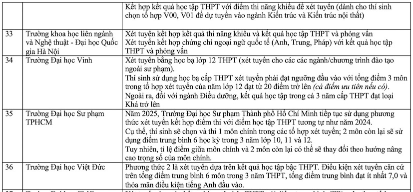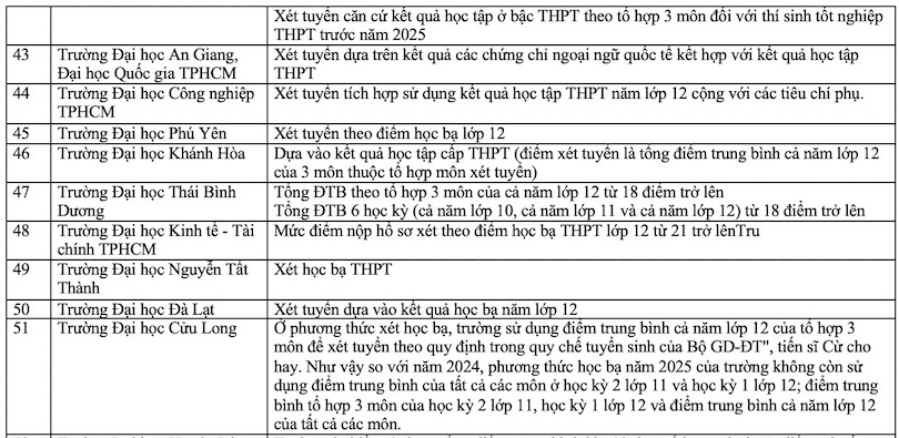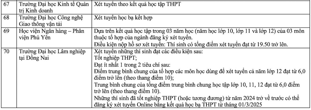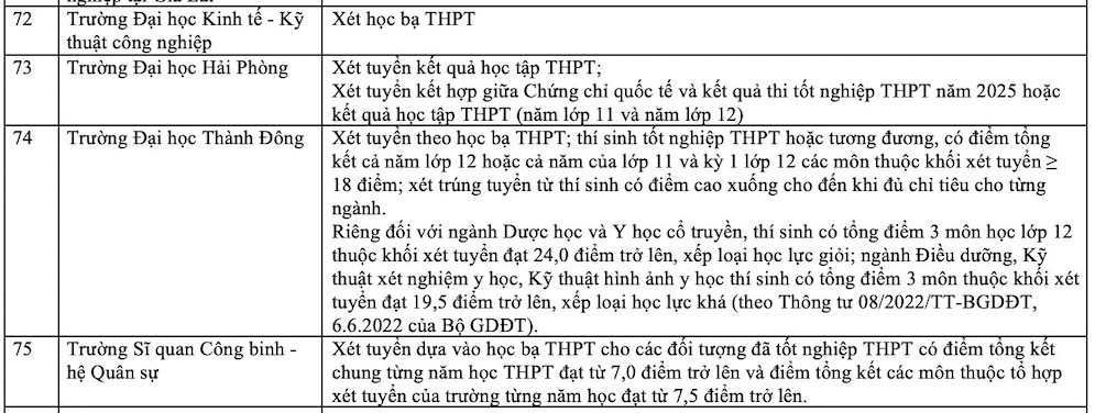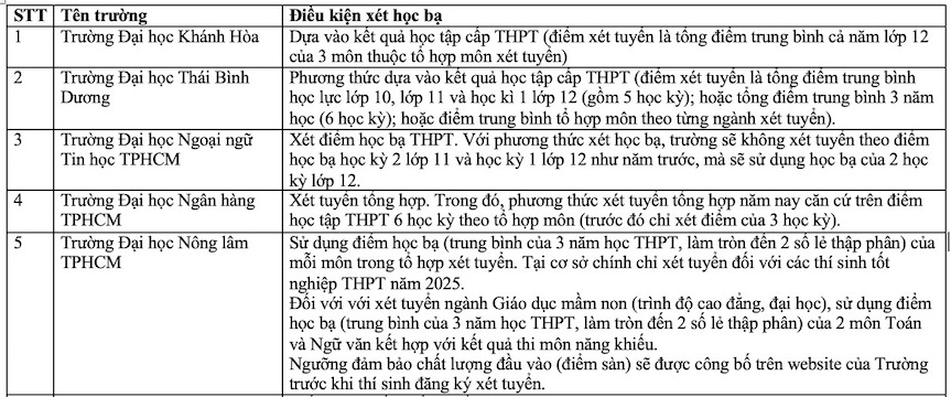 Danh sách các trường xét học bạ THPT năm 2025. Ảnh: Vân Trang