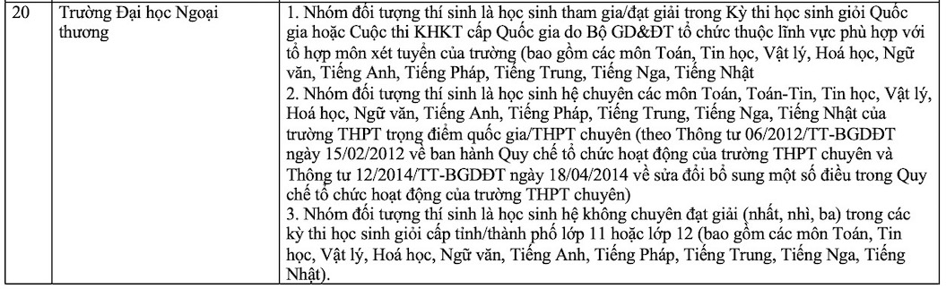 Đối tượng: Xét tổng điểm trung bình cả năm lớp 12 của tổ hợp môn xét