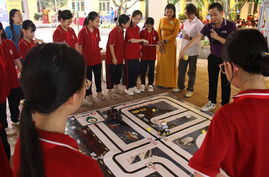 Thầy - trò Trường THCS Vĩnh Hưng (Hà Nội) trong hoạt động ngoài giờ lên lớp. Ảnh: TG |