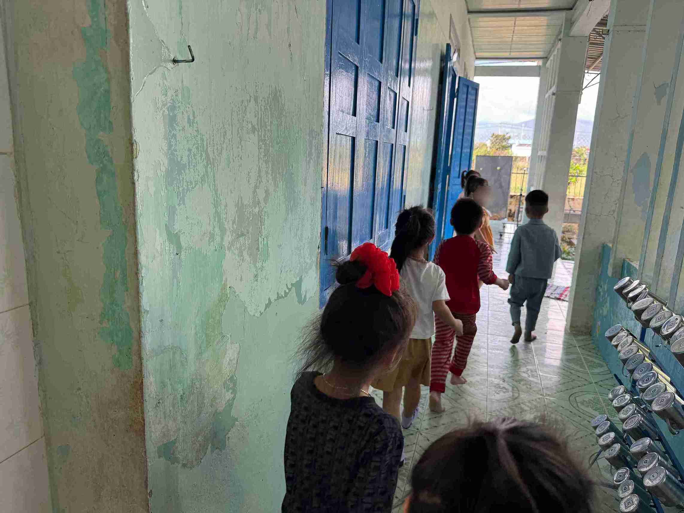 Tại thôn An Ninh, mưa lớn kéo dài thời gian qua càng làm tăng nguy cơ mất an toàn. Giáo viên cho biết có những thời điểm phải di chuyển lớp học sang khu vực khác để tránh chỗ dột, tường bong tróc.
