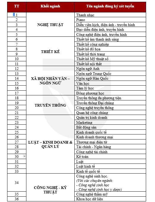 - Xét tuyển kết hợp với thi tuyển các môn năng khiếu (áp dụng với các ngành năng khiếu)