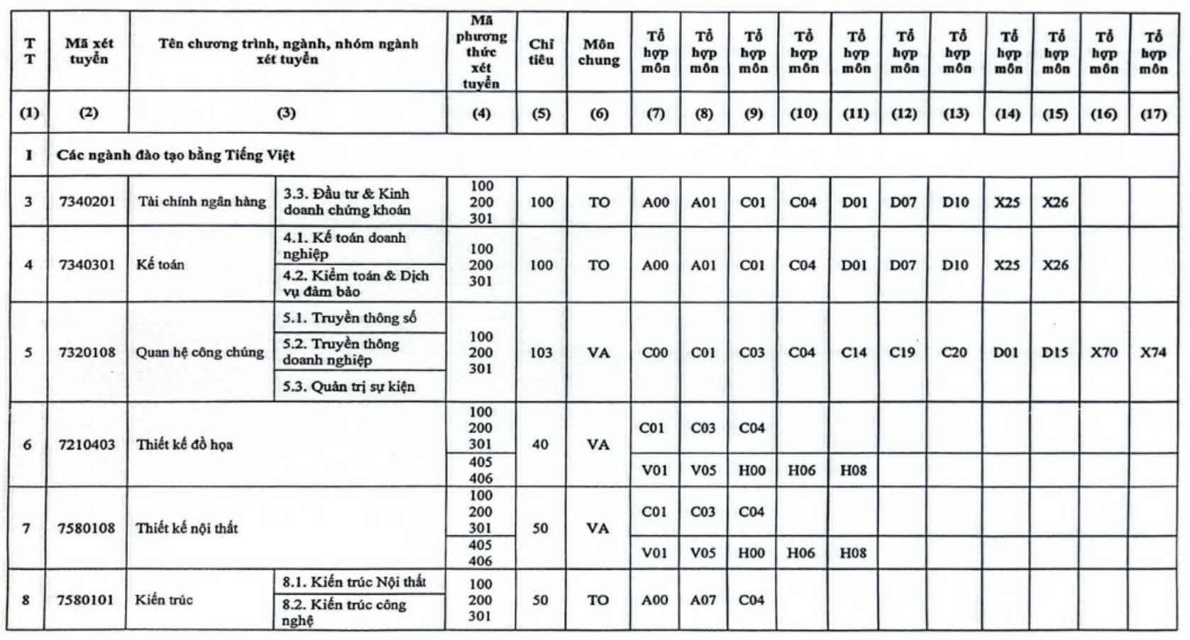 - Phương thức 5: Xét tuyển tổng hợp kết hợp nhiều tiêu chí.