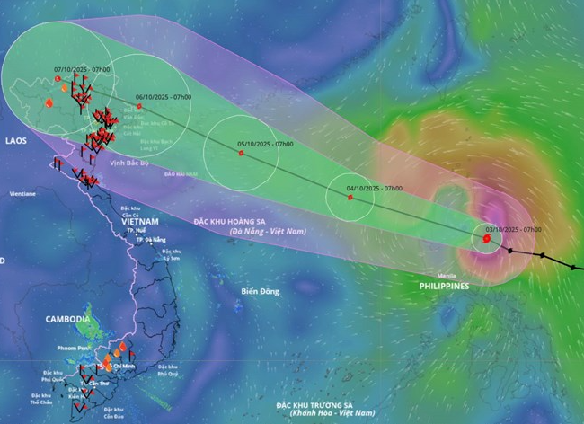 Đến 7 giờ ngày 4.10, vị trí tâm bão ở khoảng 18 độ vĩ bắc; 116,8 độ kinh đông, trên vùng biển phía bắc khu vực bắc Biển Đông, cách bán đảo Lôi Châu (Trung Quốc) khoảng 750 km về phía đông nam. Sức gió mạnh cấp 10-11, giật cấp 14.