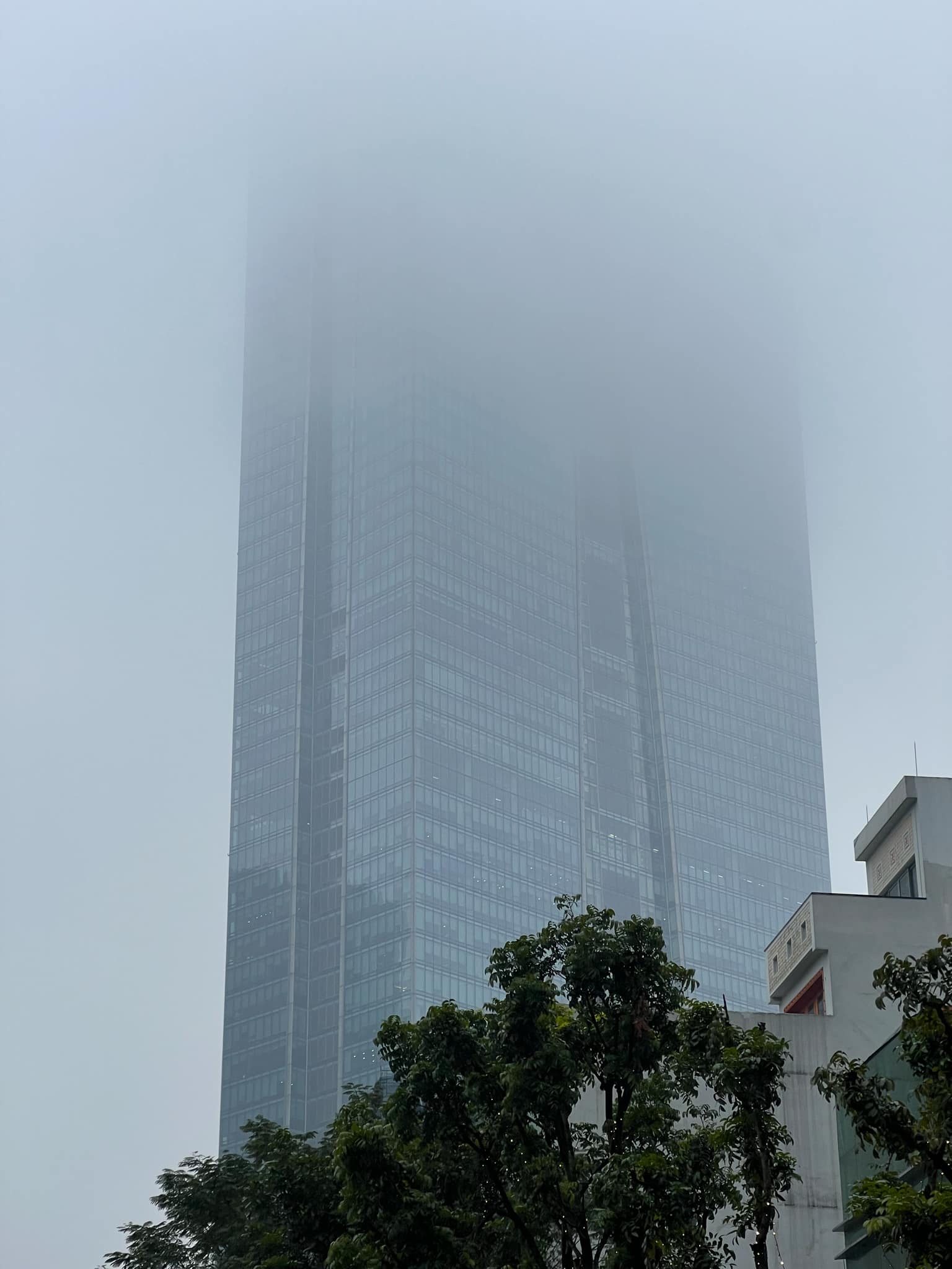 Nhiều tòa nhà cao tầng khác cũng trong tình trạng tương tự, ẩn hiện trong lớp sương mù.
