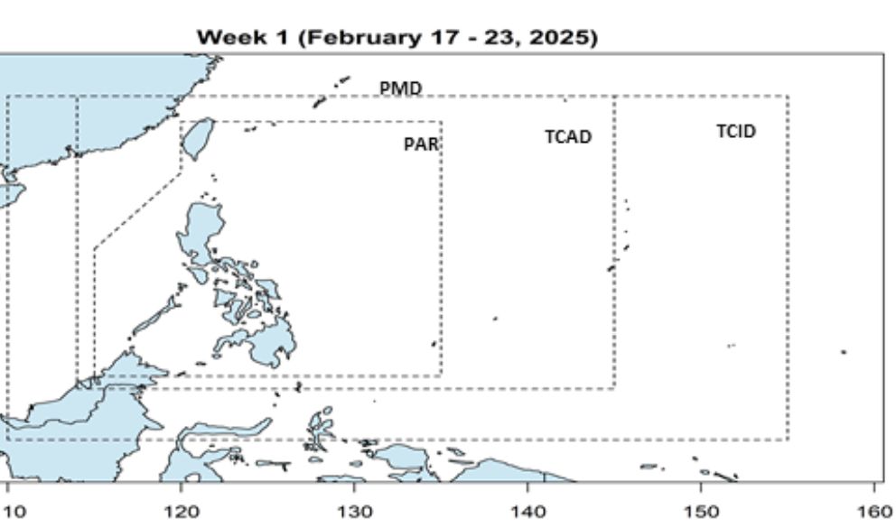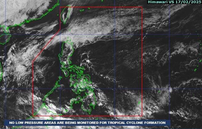 Bản tin dự báo bão ngày 17.2 của Cục Quản lý Thiên văn, Địa vật lý và Khí quyển Philippines cho hay, dự báo từ ngày 17.2 đến 2.3.2025, không có vùng áp thấp hay cơn bão nào hình thành trong khu vực dự báo của Philippines (PAR) cũng như ở Biển Tây Philippines (Biển Đông).