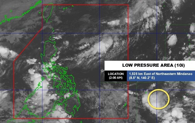 Tính đến 2h sáng 30.10, PAGASA đang theo dõi một vùng áp thấp (10i) bên ngoài PAR, ở 8,5 độ vĩ bắc, 140,2 độ kinh đông, cách đông bắc Mindanao 1.525km về phía đông. Áp thấp này có khả năng thấp phát triển thành áp thấp nhiệt đới trong vòng 24 giờ tới.