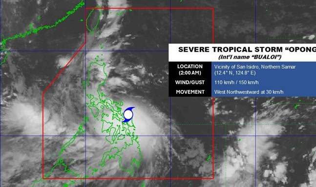Cục Quản lý Thiên văn, Địa vật lý và Khí quyển Philippines (PAGASA) cho hay, bão Bualoi (tên địa phương là Opong) đã đổ bộ vào San Policarpo, Đông Samar, Philippines lúc 23h30 đêm 25.9, mang theo mưa xối xả và gió mạnh.