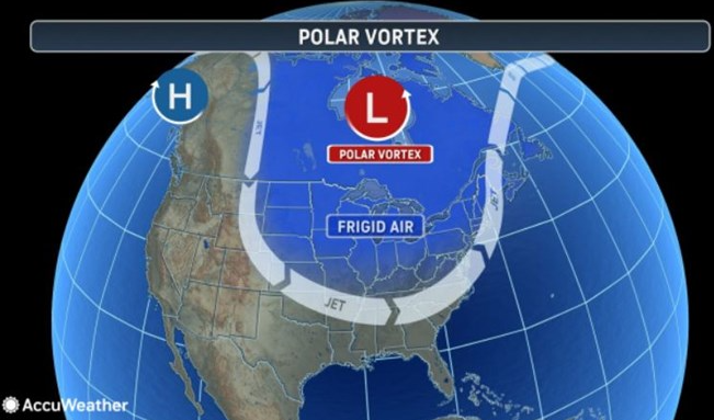 Sự xáo trộn mạnh hiếm gặp của xoáy cực đẩy không khí lạnh tràn sâu xuống phía nam. Ảnh: AccuWeather