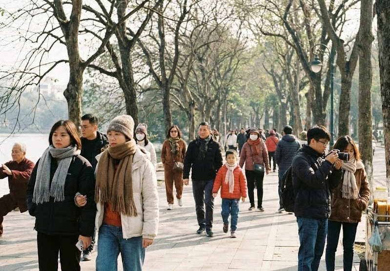 Người dân Hà Nội tận hưởng ngày đông khô ráo nhưng vẫn phải quàng khăn ấm - Ảnh minh họa