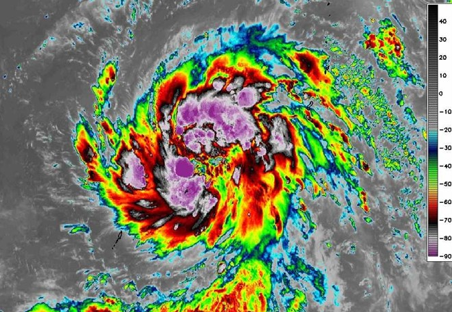 Bão Fung-wong, tiền thân bão số 14, vào lúc 4h sáng 7.11. Ảnh: Weathererds.org