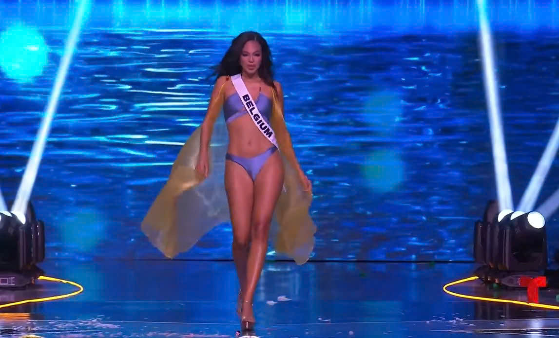 10h35: Kỳ Duyên trình diễn áo tắm, chọn trang phục 2 mảnh khoe vóc dáng săn chắc, tóc buộc cao. Cô sở hữu chiều cao 1,75m, số đo hình thể lần lượt là 85-59-93cm. Đại diện Việt Nam có kinh nghiệm catwalk, nhiều lần làm vedette các đêm diễn thời trang.