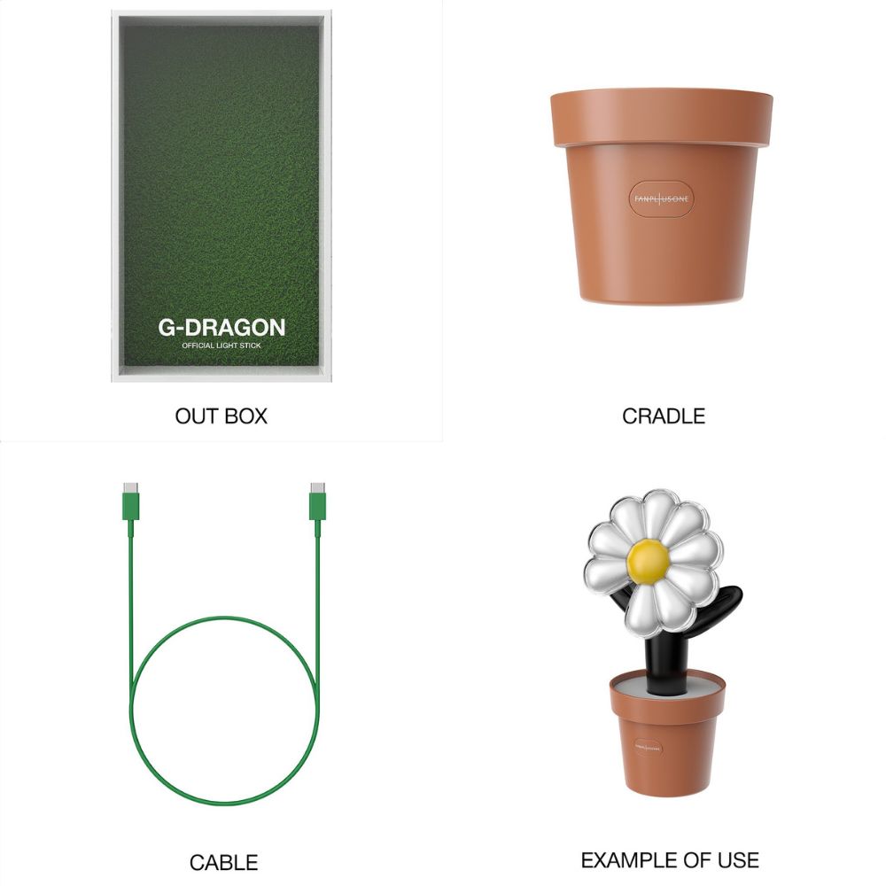Vì vậy, không có gì lạ lẫm khi hoa cúc khuyết cánh một lần nữa được sử dụng làm nguồn cảm hứng cho lightstick cá nhân của G-Dragon.