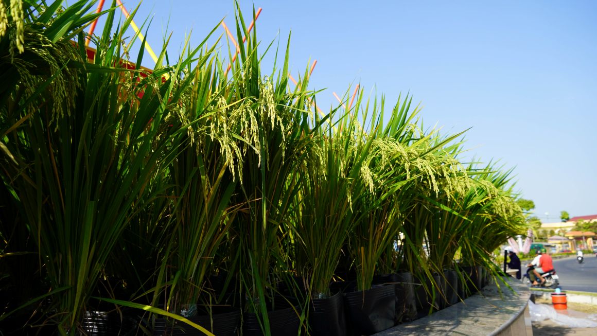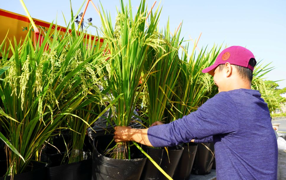 Hiện lúa đang trong giai đoạn chuẩn bị chín. Nhờ được bổ sung đất và nước đầy đủ, lúa vẫn sinh trưởng bình thường như khi trồng ngoài ruộng, đảm bảo thời gian trưng bày trong suốt dịp cao điểm Tết.