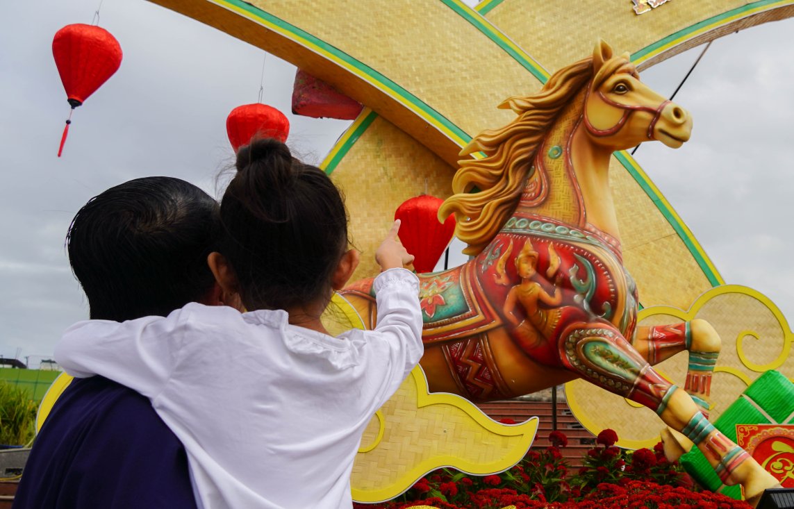 Anh Trung Thành – đại diện đơn vị thiết kế – cho biết, ý tưởng được phát triển dựa trên sự hòa quyện của ba nền văn hóa Kinh – Khmer – Hoa, thể hiện qua hệ thống hoa văn trên thân ngựa và các cụm tiểu cảnh xung quanh. Toàn bộ quá trình thi công được thực hiện trong khoảng 2 tuần để kịp tiến độ phục vụ người dân vui xuân.