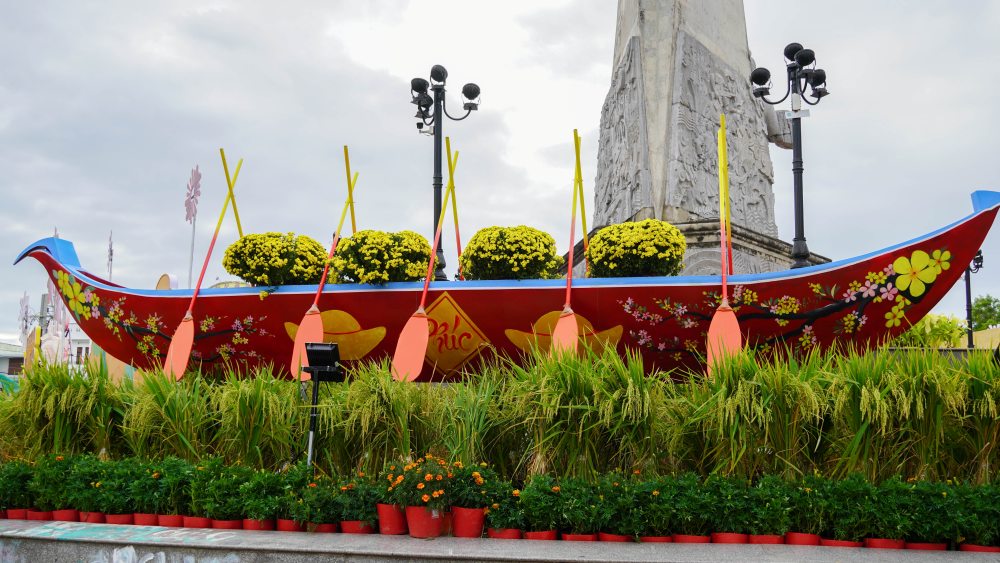 Theo UBND phường Sóc Trăng (TP Cần Thơ), khu vực vòng xoay tượng đài 3 cô gái được bố trí 6 cụm trang trí, gồm 1 cổng chính, 2 cụm phụ và 3 cụm thuyền hoa. Đây là điểm nhấn quen thuộc mỗi dịp Tết, thu hút người dân và du khách đến tham quan, chụp ảnh, góp phần tạo không gian du xuân và nâng cao đời sống tinh thần cộng đồng.