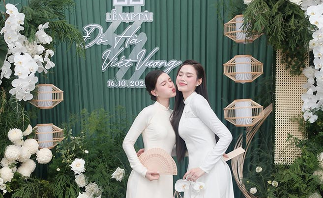 Phù dâu xinh đẹp trong đám cưới Hoa hậu Đỗ Thị Hà và thiếu gia Tập đoàn Sơn Hải hé lộ nhiều điểm tương đồng trong sở thích giữa cô và người chị thân thiết.